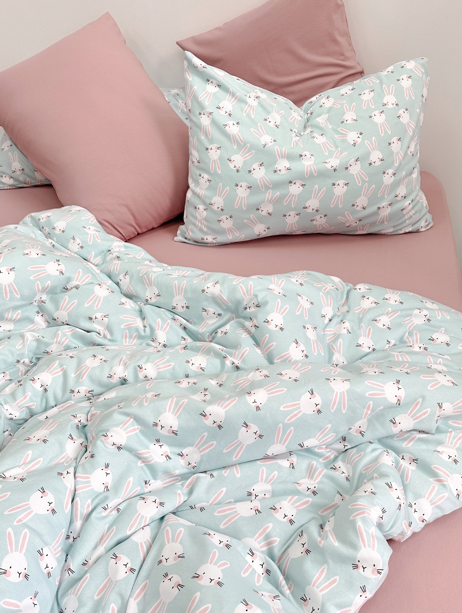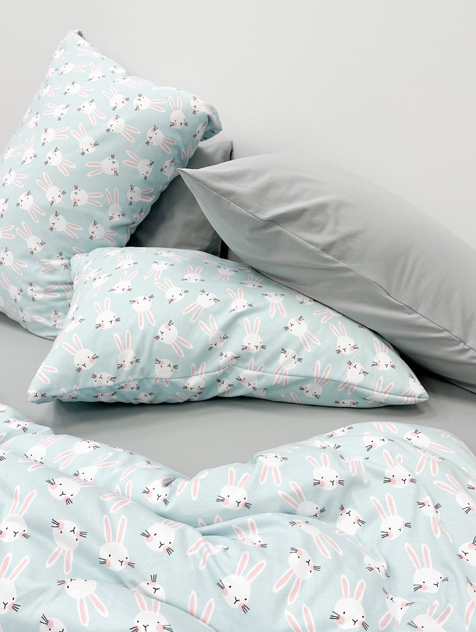 Цвет: зайцы на голубом фоне/компаньон серый или розовый