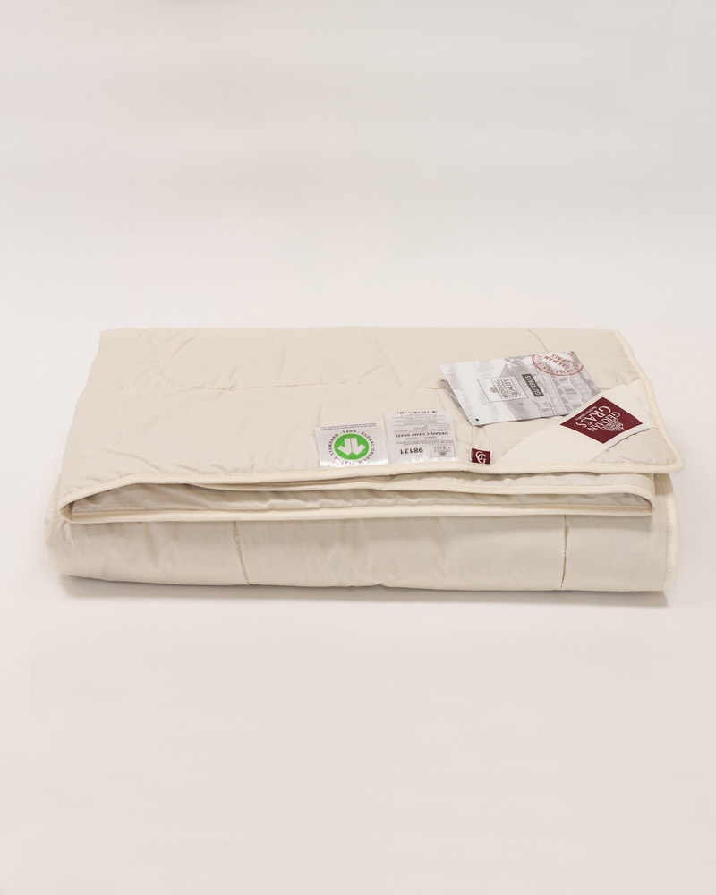 Легкое одеяло с воздушным эко-наполнителем, созданным на основе технической конопли с добавлением волокон льна.