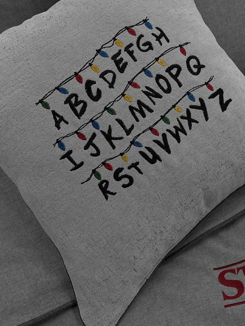 Подушка выполнена из мягкой, комфортной покрывальной ткани с вышивкой. Выбирайте вышивку по своему желанию - Алфавит из параллельной ресльности или название сериала.