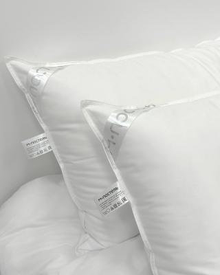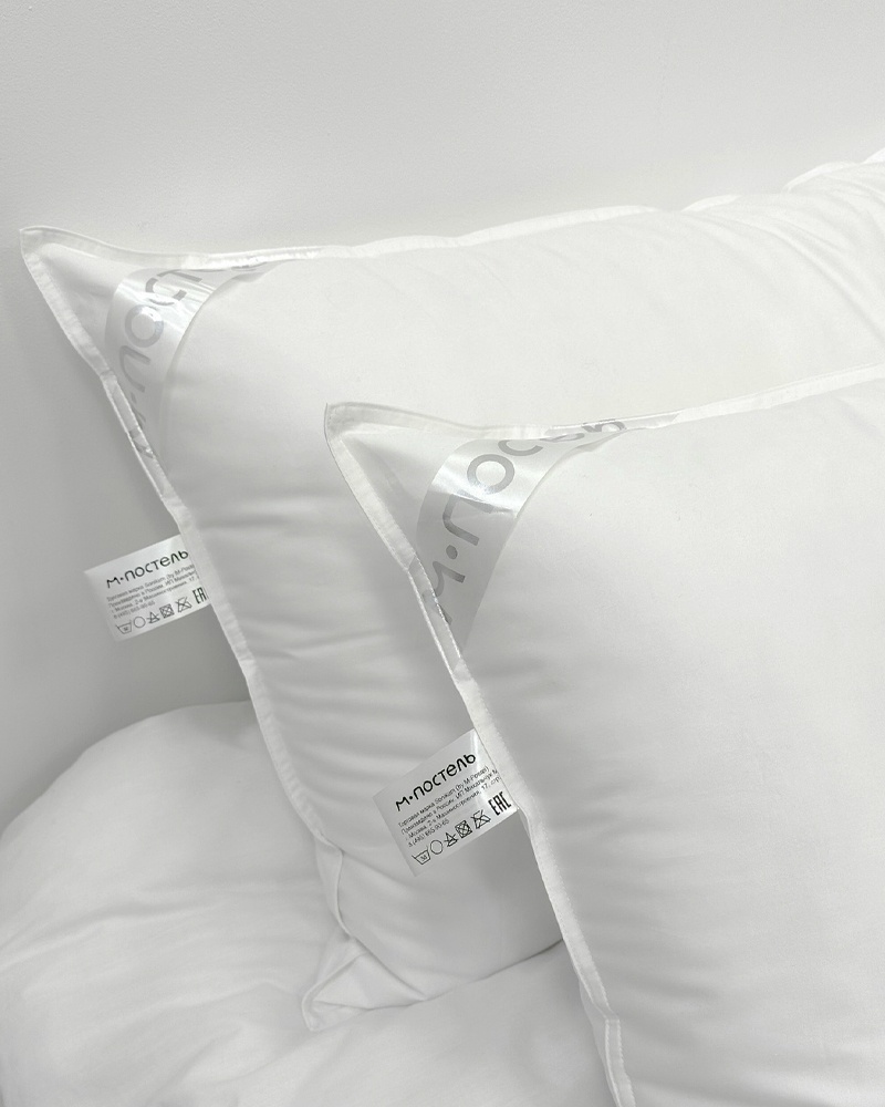 Внутри подушки гипоаллергенный заменитель пуха (лебяжий пух). По своей структуре наполнитель похож на натуральный пух, благодаря чему подушка становится необыкновенно мягкой, при этом в них не развиваются пылевые клещи и вредные бактерии.