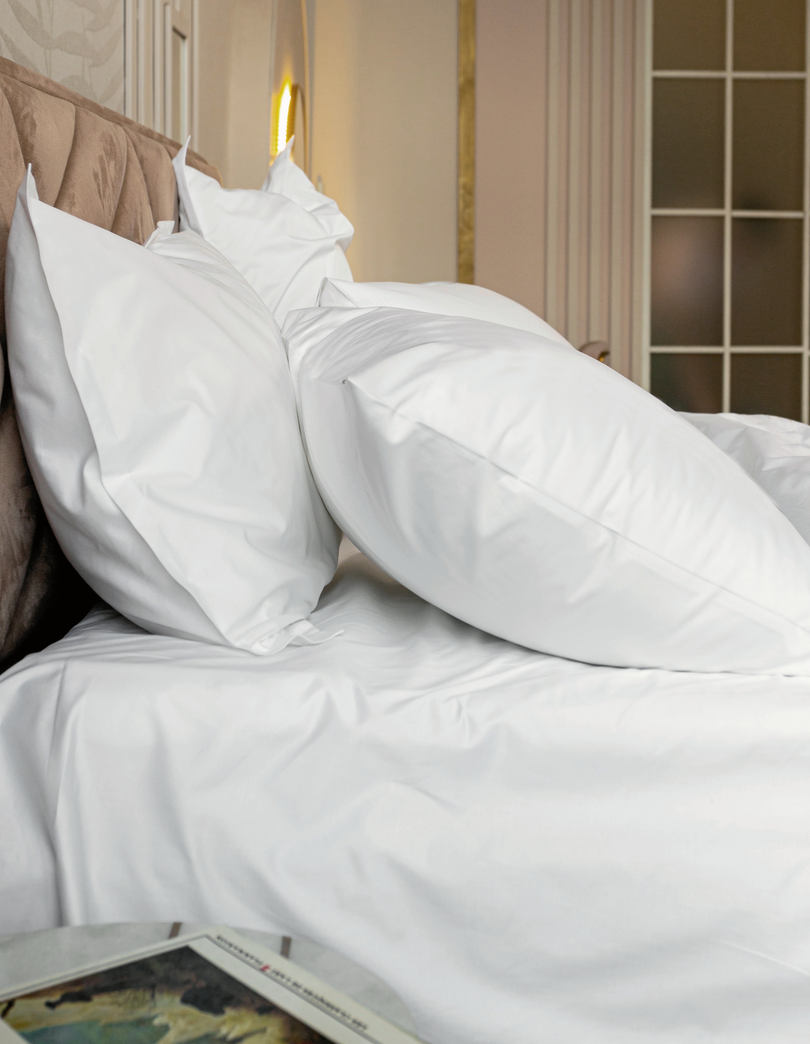 Отельная классика — белое постельное белье, выполненное из сатина повышенной прочности 400 нитей на дюйм. Прослужит вам долгие годы и будет напоминать о залитом солнцем номере отеля.