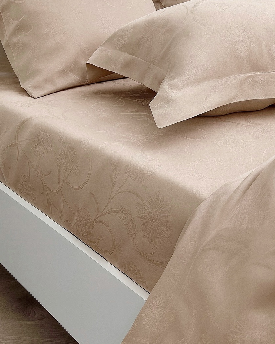 Простыня может быть выполнена из гладкого или жаккардового тенсела на выбор.